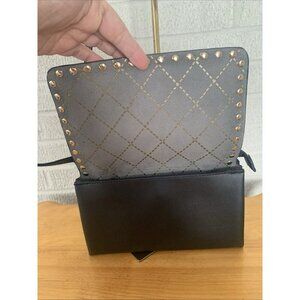 Mark & Hall Fold Over Black Faux Leather Crossbody Flap Bag Gold Rock Stud EUC