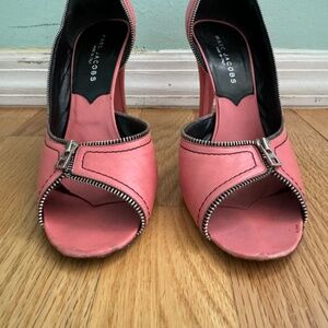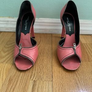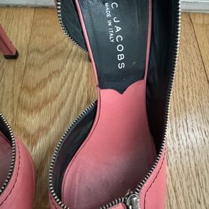 I wear 38-38 1/2 and these fit me fine. The leather is in fine condition. there is two marks on one heel.I just noticed when Photographing. Worn 5 times. Heals are 2 1/2 inches.