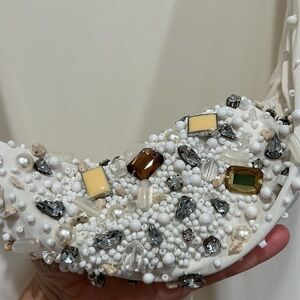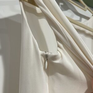 Mark + James x Bagley Mishka embellished drape open back white mini dress bridal