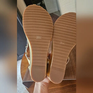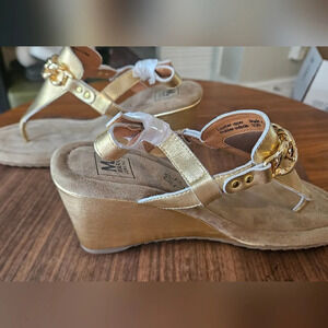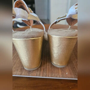 Mark Jenkins-Chain:Stylish 2 Wedge. Gold leather Size 9 NWOT