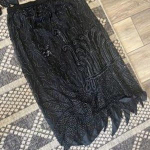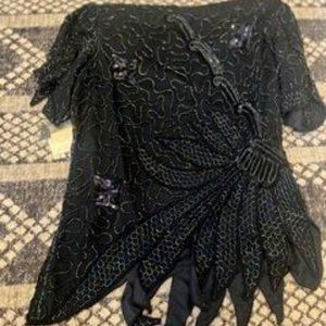 Large Black Beaded & Sequenced 100% Pure Silk 100% Polyester Lining Made In India