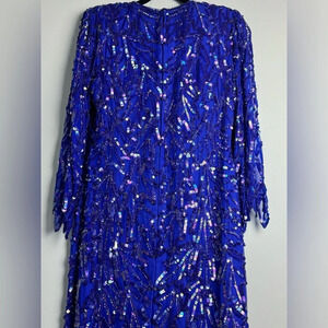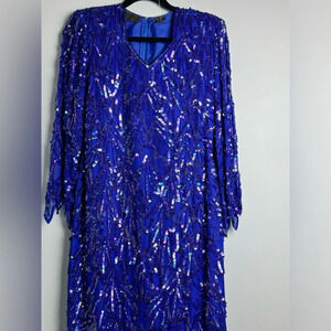 Mark & John by SAM Vintage Blue beaded/sequin zigzag pattern hem silk midi dress