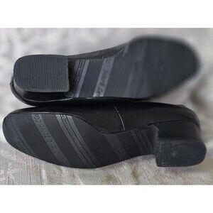 The Mark Lemp Classics by Walking Cradles Callie Flat Shoes in size 6M are stylish and comfortable slip-on flat pumps, perfect for casual occasions. With an almond toe shape, solid black color, and leather upper material, these shoes feature a slip-resistant rubber outsole for added safety. The slip-on style and slip-resistant feature make them convenient and practical for everyday wear, while the comfort aspect ensures all-day comfort. The Walking Cradles brand is known for quality footwear, making these flats a reliable choice for women in need of a stylish and practical shoe option.