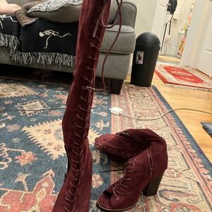 Mark & Maddux Burgundy Over-The-Knee Peep Toe Boots