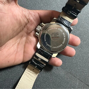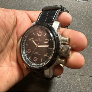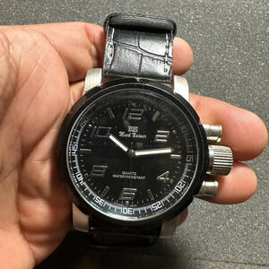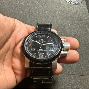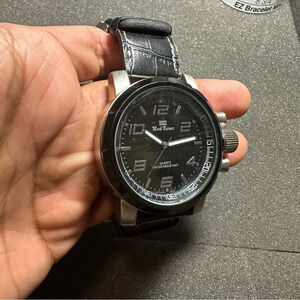 Mark Naimer Mens Quartz Watch Silver Tone Black Dial Black Band Working shows signs of wear such as light scratches in case and crystal