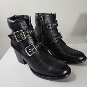 Mark Nason Black Leather Moto Buckle Ankle Heel Boots Size 9