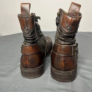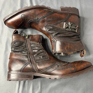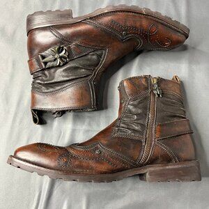 Mark Nason Boots 71785 Men Size 8.5 Brown Leather Zip Sword Cross Lounge U ROCK Zip Up Moto Biker Boots