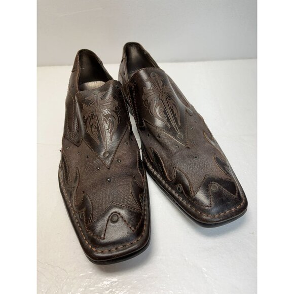 Mark Nason Brown Leather Slip-On Mens Dress Shoes Size 10.5 With Western Design