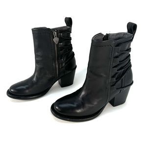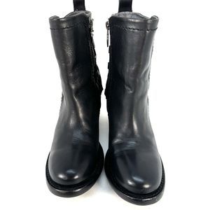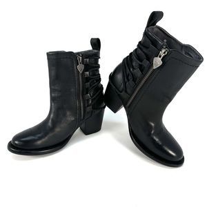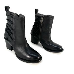 Mark Nason Yuma Flora Ankle Biker Back Laced Heeled Boots Black Leather Women 6