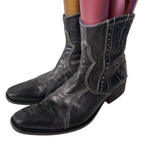 d ankle boot western rugged tattoo studded rivets biker