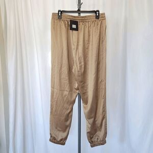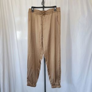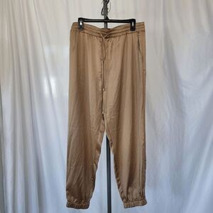Mark New York women's dark taupe tapered dress pants size L stunning satin fabric