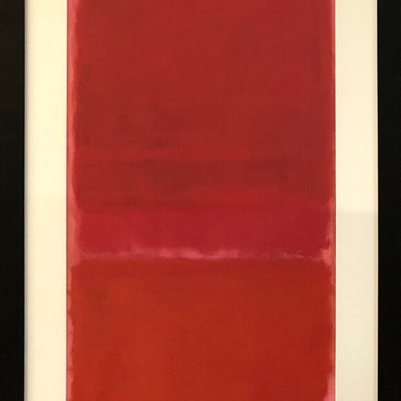 Offset lithograph poster featuring Mark Rothko’s No. 37, a powerful example of his signature exploration of color, form, and emotional depth. The artwork is framed in a black wood frame with a 1 3/4-inch front profile and a 3/4-inch side profile, set behind a 3-inch mat that enhances its visual impact. Total framed dimensions are 41 inches x 28 inches, making it a bold and elegant statement piece.