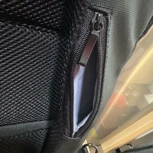 -Includes an expandable water bottle holder on the outside (I’ve found that a water bottle also fits in the front pocket