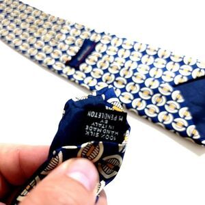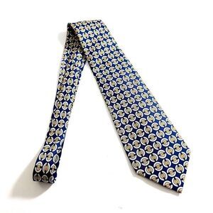 Mark Shale Blue Yellow Geometric Print Wide Silk Tie
