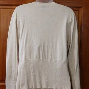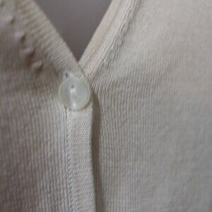 • Condition: Gently used preowned (tiny loose thread on cardigan; shell split at V-neck)