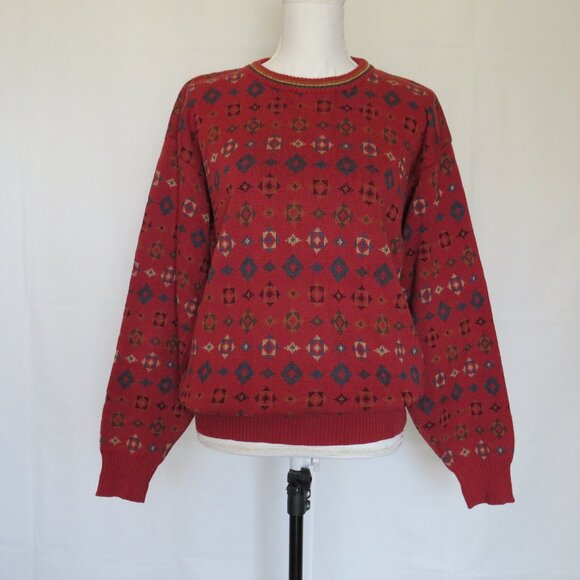 Mark Shale Geometric Pattern Ribbed Hem Long Sleeves Vintage Men’s Sweater L