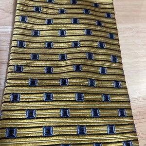 Mark Shale Gold and Navy Blue Patterned Tie Necktie 100% Silk