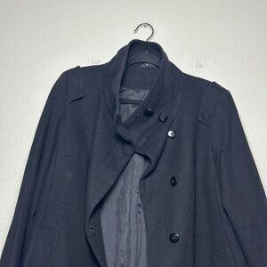 Mark & Spencer Wool Blend Trench Overcoat Jacket Men UK 12 Button Up Navy Blue