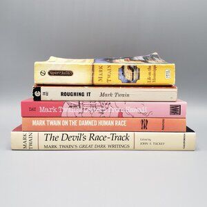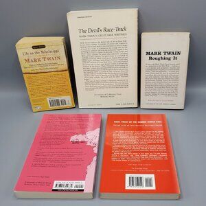 Bundle lot of 5 paperback books containing Mark Twain's non-fiction writings. They measure approximately 6-3/4" to 8-7/8" tall, 4-1/8" to 5-7/8" wide. All books are in good condition. All pages are intact and clean, no odors. There is some wear on the cover edges/corners and two books have a name/inscription written on the front page. From a smoke-free home.