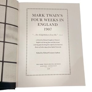 2nd book- like new. Mark Twain four weeks in England 1907. Published for the mark twain House & museum in Hartford Connecticut 2006.