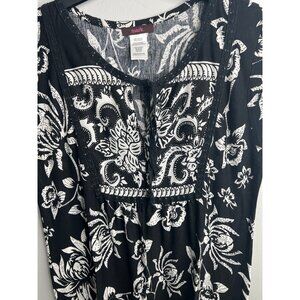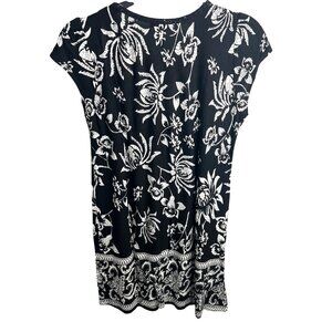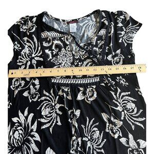 Mark Womens Black & White Floral Print Summer V-Neck Dress Knee-Length Large