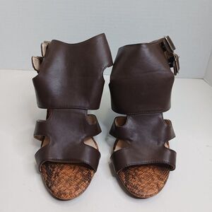Faux Leather. Brand new store display item, no box. Please scroll picture for more details. Mark Women's 7M Snake Embossed High Heel Sandal. Pet and smoke free home.