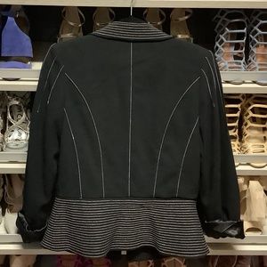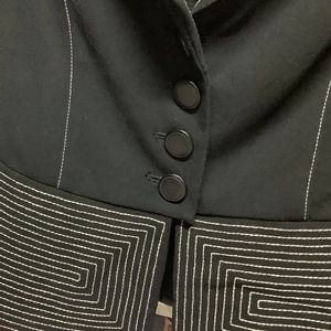 Like new Little Black Blazer with button front. Great for work or girls night out with jeans. Super cute excellent condition. Poly, Rayon and Spandex combo.