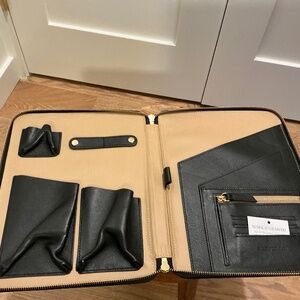 • Leather exterior with a polyurethane lining and a zipper closure. Unused