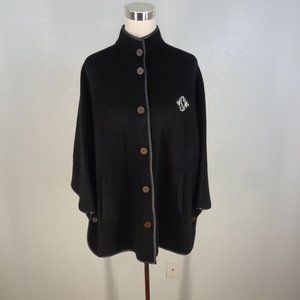 Mark and Graham Women's Black Bat Wing Poncho Lambswool Sz S/M Monogram