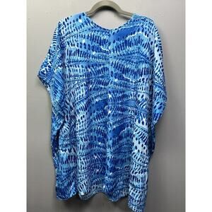 Mark by Avon blue watercolor crochet accents womens large swim cover up