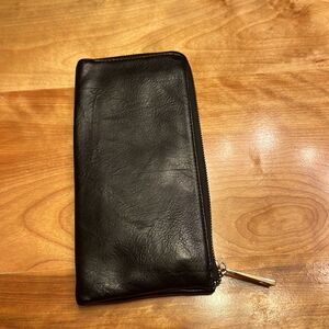 Black leather wallet with brown inside three sections fits iPhone max pro