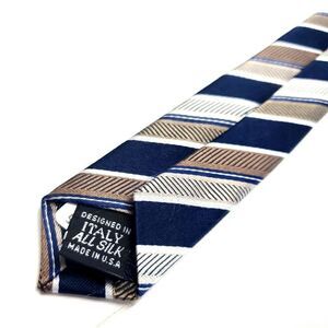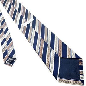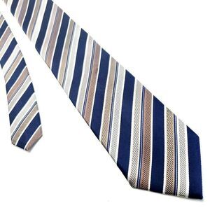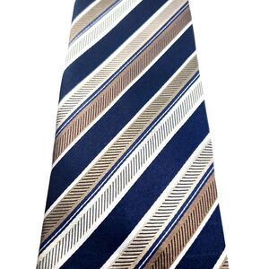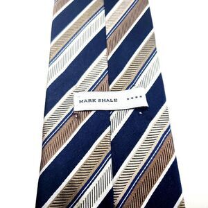 Mark Shale Silk Tie Woven Blue Brown Tan Striped