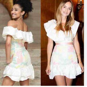 Markarian Dress Mini Ruffled Floral Off the Shoulder Pastel Grace size 2