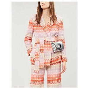 Markarian Rainbow Belted Tweed Blazer Jacket - Orange Pink Cream Striped