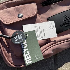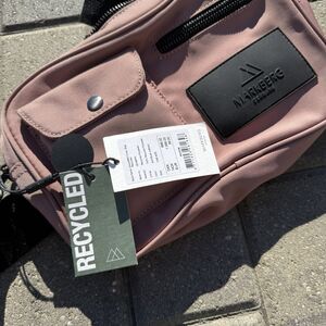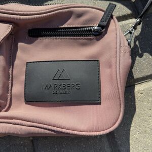 Markberg, Markberg Denmark, recycled bag, crossbody bag, sling bag, rose pink bag, sustainable bag, eco-friendly, travel bag, adjustable strap, multi-pocket bag, NWT, womens crossbody, utility bag
