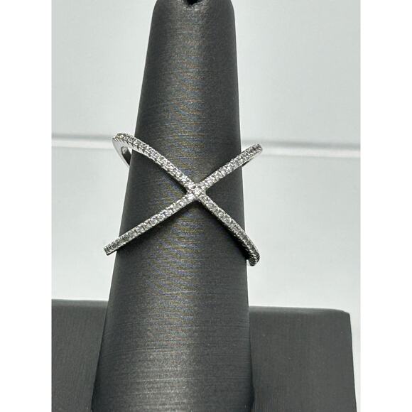 Marked JCM Silver over Brass Ring with CZ stones size 7 1/2