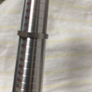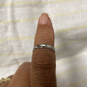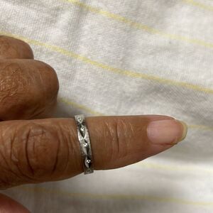 Silver ring sizer tool with measurement markings. Ideal for accurate ring sizing.