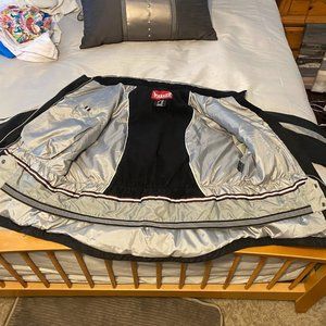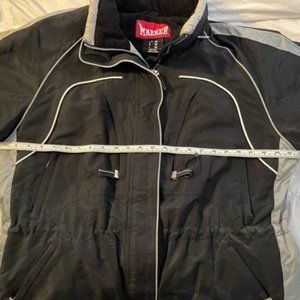 Stylish Marker ski jacket. Black with gray accents. Perfect for winter sports.