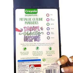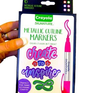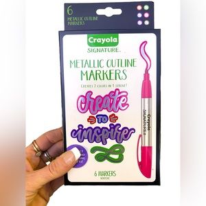 This is a pack of Crayola Signature Metallic Outline Markers & a Sharpie Signature Oil Based Black Paint Pen