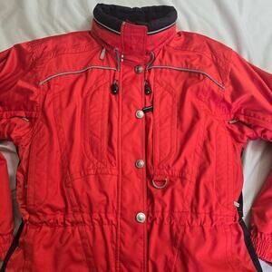ski jacket, women's outdoor wear, insulated jacket, red waterproof jacket, snowboarding jacket, women's size 8 jacket, winter sports jacket, Marker brand jacket, ski gear, durable winter wear