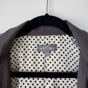 Market And Spruce Boho Utility Parka Jacket. Fully Lined, Two Pocket , Drawstring Waist Tie, Detatachable Hood.Full Zip and Button Closure.Charcoal Gray With Polka dot Lining S