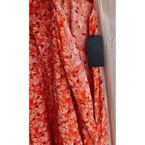 Market & Melrose Orange Floral Romper V-Neck Pockets Side Zipper Large NWT
