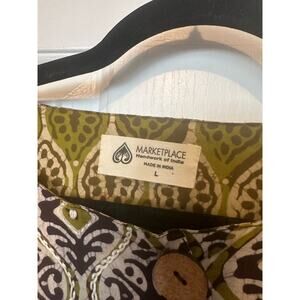 Market Place Handmade in India Ikat Print Reversible Jacket Green Women's Large