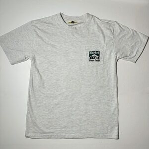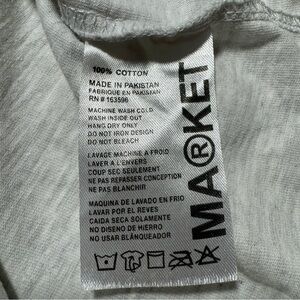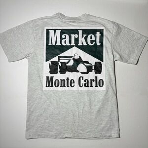 Market racing logo short sleeve pocket t-shirt. Light heather gray color with black, green and white Market Monte Carlo racing logo on front and back. 100% cotton. Excellent used condition. Size medium, measurements laying flat 20.5” pit to pit, 27” shoulder to hem. Stock photo included to help show fit.