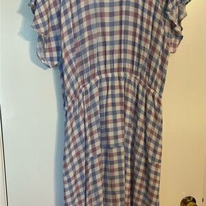 Market & Spruce 100% Rayon Pastel Checkered Dress with Pockets Plus 2X