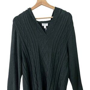 Market & Spruce Afon Hooded Sweater Plus Size 3X Spruce Cable Knit Pullover