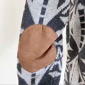 Market & Spruce Womens Sz S Aztec Gray Open Front Cardigan Sweater Elbow Patch Thick Knit