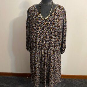 Market & Spruce Black Floral V-neck 3/4 sleeves Midi dress, size 3X