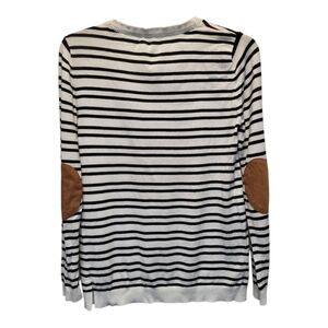 This elegant sweater by Market & Spruce showcases a sophisticated black and white stripe design with elbow details, ideal for a polished yet casual look. Made from a soft knit fabric, it ensures comfort and style for any occasion. The crew neck adds a classic touch to this versatile piece.