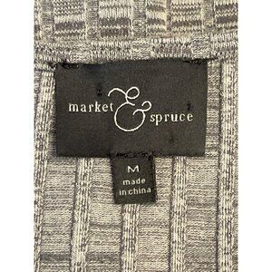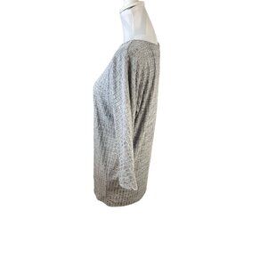 Elevate your style with Market & Spruce's quarter sleeve blouse in medium size. The ribbed gray top features a back zip and a space grey white pattern. It's designed for women who love a blend of comfort and sophistication.
